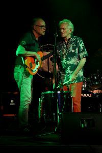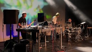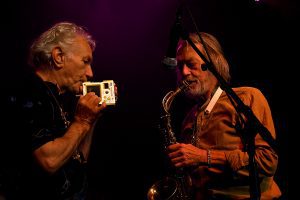 Guru Guru feierten ihr 55-jähriges Bandjubiläum mit einem Konzert in der Kunstgießerei Schöneiche. Vor vollem Haus und in bester Stimmung boten die alten Haudegen 2,5 Stunden virtuose Spielfreude und als Zugabe den Elektrolurch. Ein großartiges Konzert mit Zeus B. Held, Peter Kühmstedt, Mani Neumeier und Roland Schaeffer.