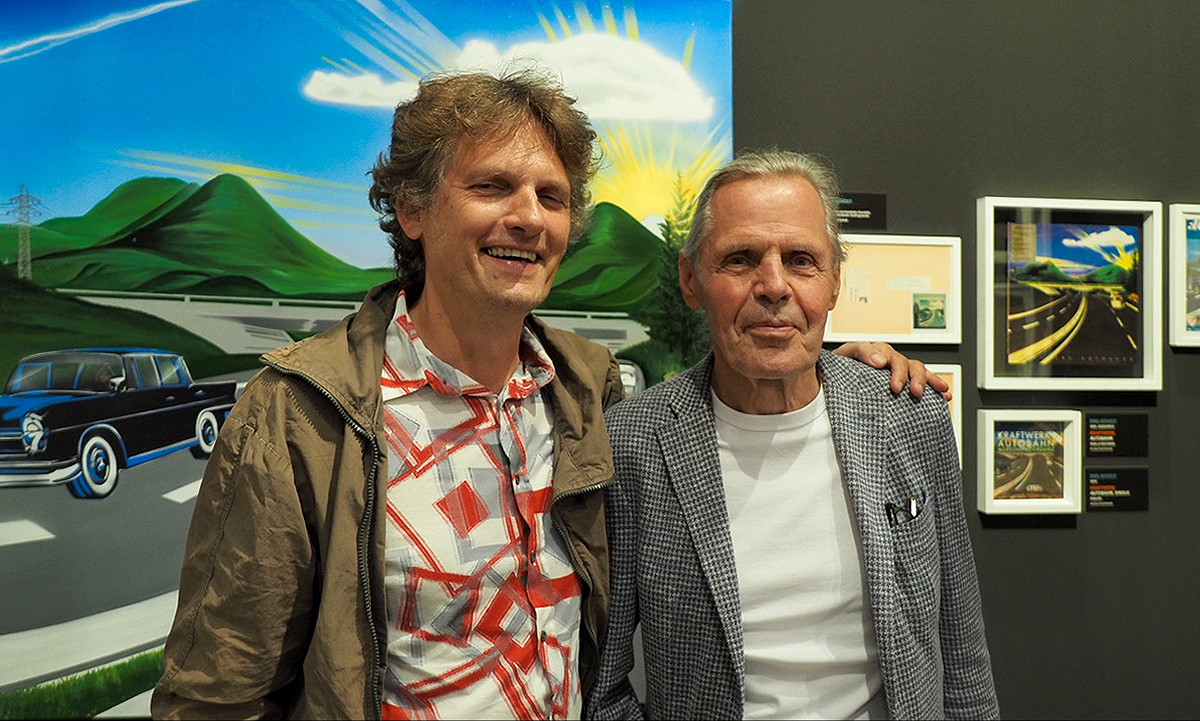 Bei der Aus­stel­lung »Cover Art« in der Gale­rie Stihl Waib­lin­gen wer­den Emil Schults Kraftwerk-Entwürfe eben­so gezeigt, wie Ruther­ford Changs Beatles-Hommage »White Albums«. Bei der Aus­stel­lungs­er­öff­nung am 1. Juli 2022 traf Gerd die Künst­ler. Mit Emil Schult, der unser Buch- und Aus­stel­lungs­pro­jekt maß­geb­lich unter­stütz­te, war es ein freu­di­ges Wie­der­se­hen. Gemein­sam bega­ben sich Gerd und Emil heim­wärts auf die Auto­bahn in Rich­tung Köln. Die Fahrt bot reich­lich Zeit zum Gespräch und Gerd war über­rascht, wie Emil trotz all der aktu­el­len Kri­sen mit unge­bro­che­nem Opti­mis­mus in die Zukunft der Mensch­heit schaut.